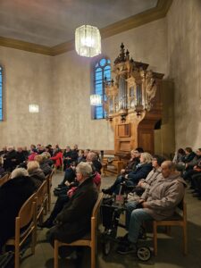 Sie informieren, verkaufen erstaunlich viele eigene, kreative Produkte. Man kennt sich, verweilt beim Rundgang bei Glühwein, Eierpunsch, Reibeplätzchen und Bratwurst und verwandelt so einen eher trüben Dezembertag zu einem Treffen „Im Dorf“.
